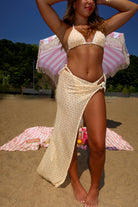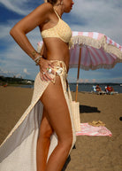 Our Side-Slit Beach Skirt is the perfect effortless, easy to slip on and ideal as a bikini cover-up. Its straight, streamlined cut gives a flattering fit, while the side slit keeps it easy to move in and adds a flirty and curvy touch. The side ring detail makes it simple to slip on and secure, no tying required. Throw it on over your swimsuit for a polished beach-to-bar look. Perfect as a bikini cover-up for beach days or poolside lounging