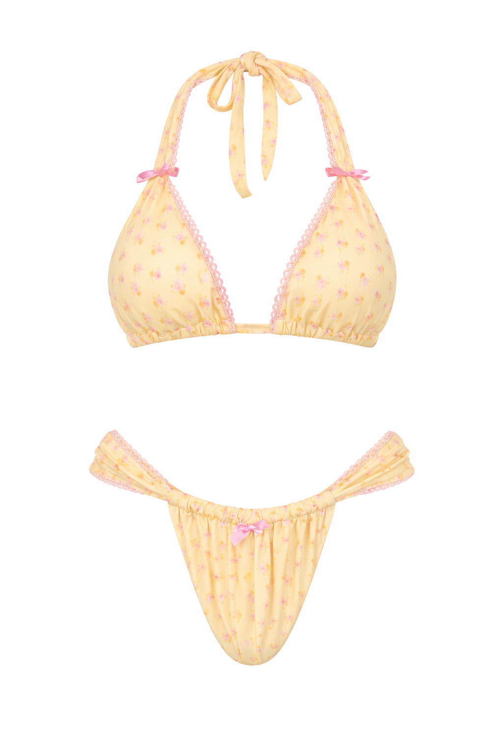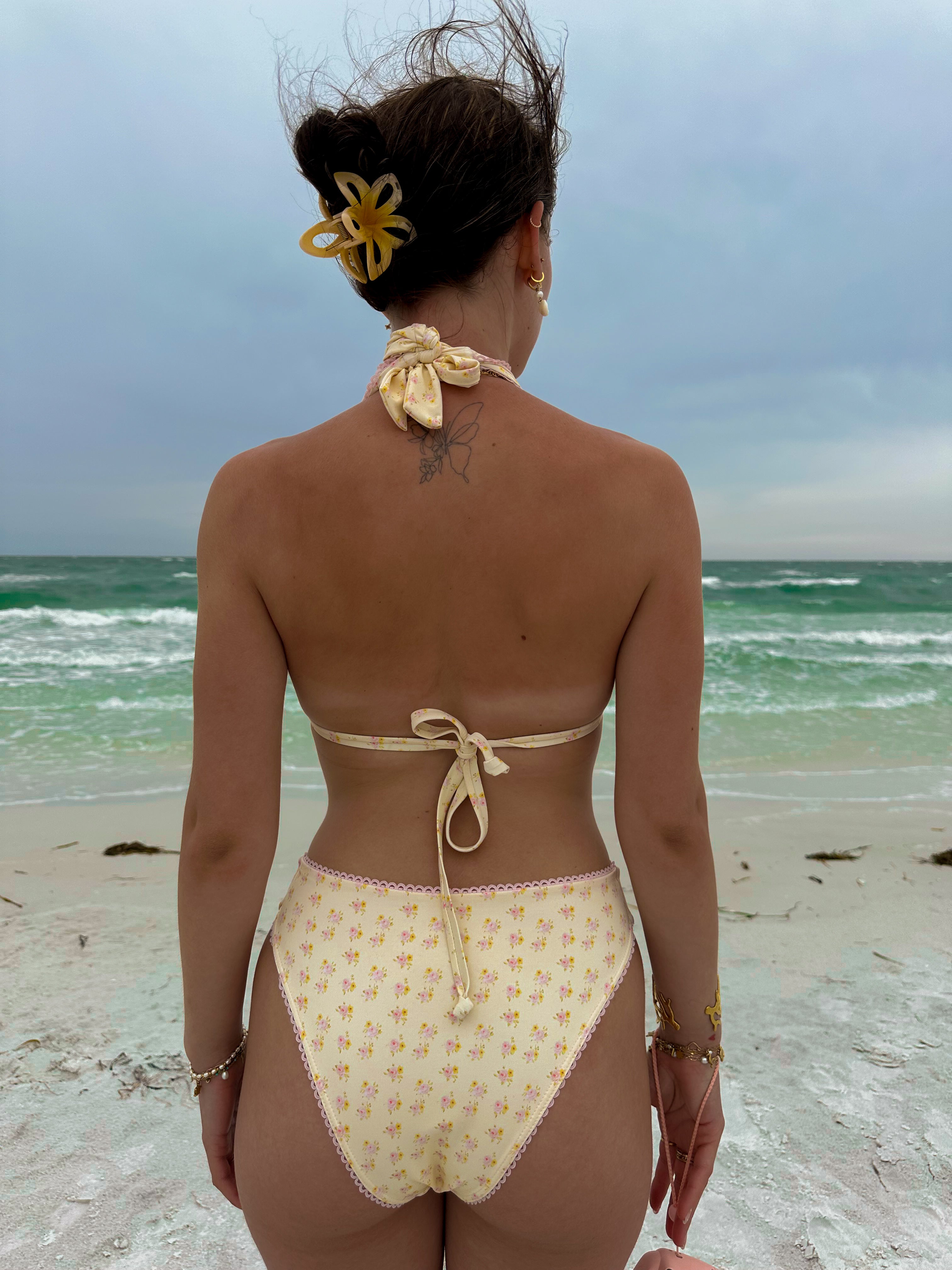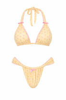 Un triangle d'inspiration vintage avec une touche romantique. Orné de dentelle délicate et d'un joli nœud, il est parfait pour un look estival à la française !