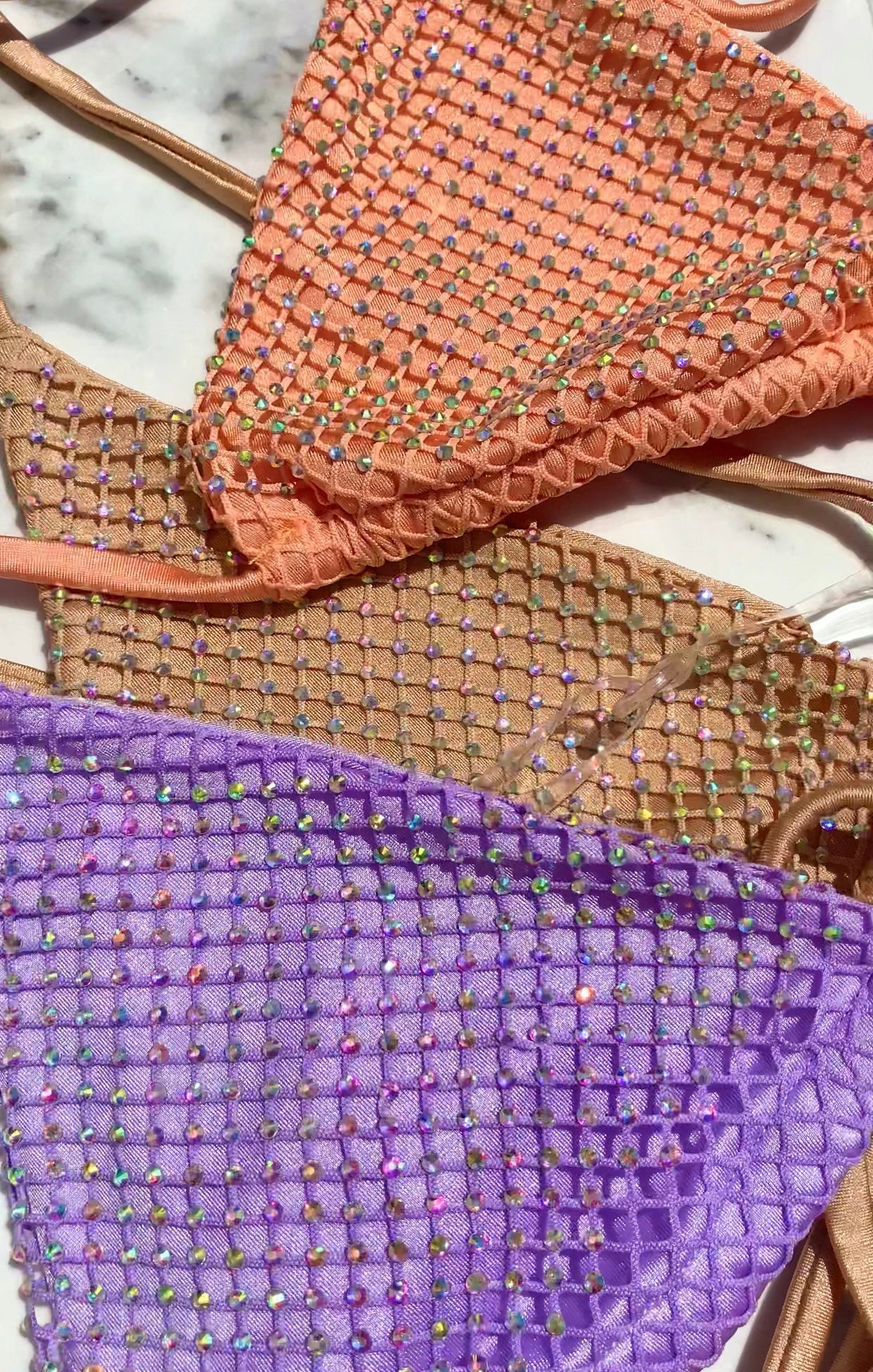 C'est le bikini dont tu rêvais, chérie. Recouvert de centaines de diamants arc-en-ciel, il est doté de délicates bretelles transparentes pour que vous vous sentiez plus sexy que jamais. Nous ne vous mentirons pas, une journée dans ce bikini vous fera tourner toutes les têtes et vous sentirez comme une star absolue !! Ce bikini a été fait à la main avec amour pour vous !