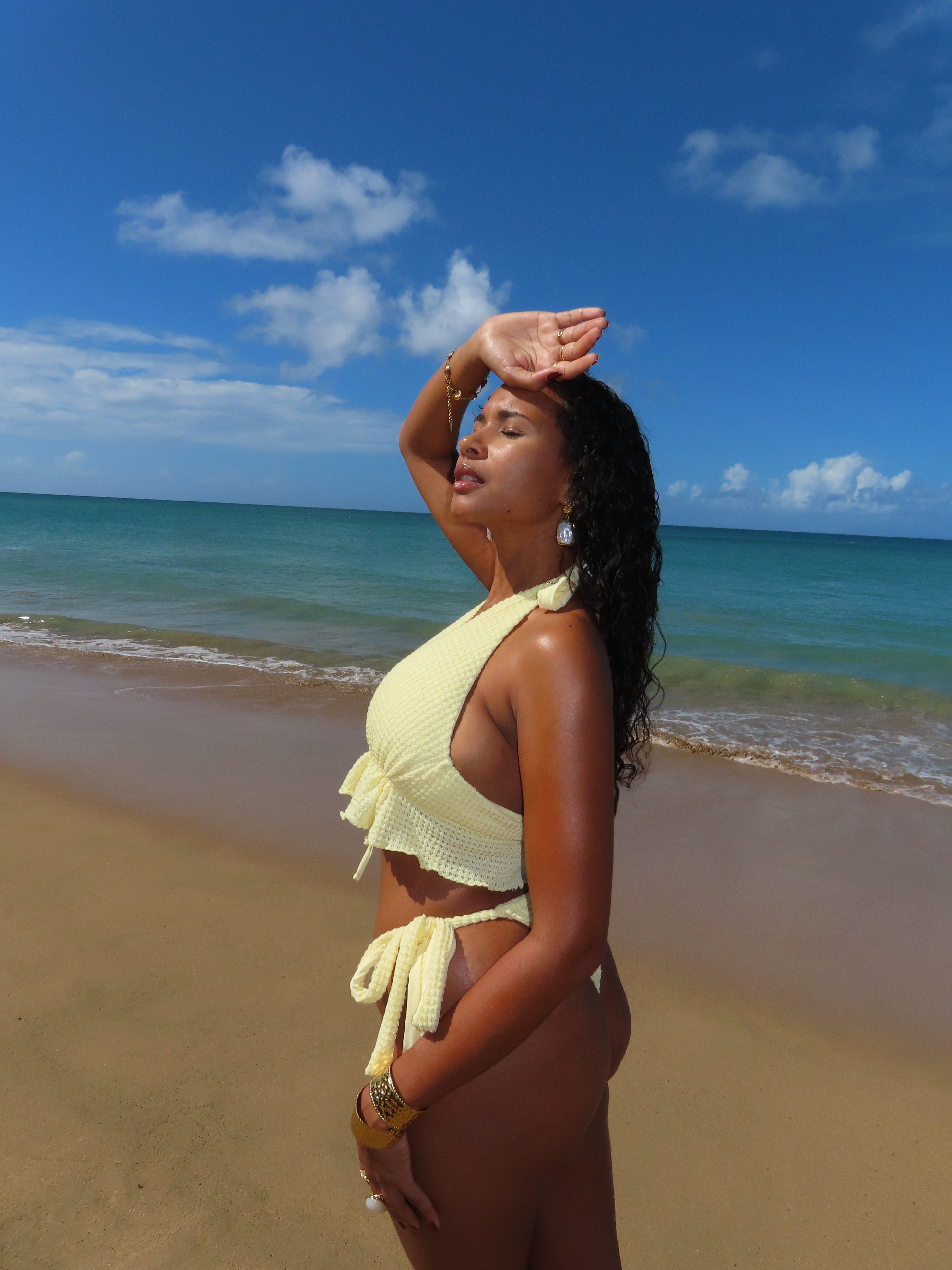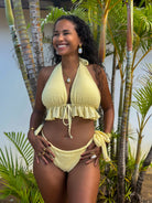 Ce bas de maillot de bain présente une silhouette minimaliste et sculptante qui allonge les jambes et souligne la taille. Sa coupe échancrée crée une allure flatteuse et moderne, tandis que les liens latéraux ajustables permettent un maintien personnalisé et une touche subtilement ludique. Son design épuré allie une féminité affirmée à une élégance naturelle, idéale pour un look ensoleillé et confiant.
