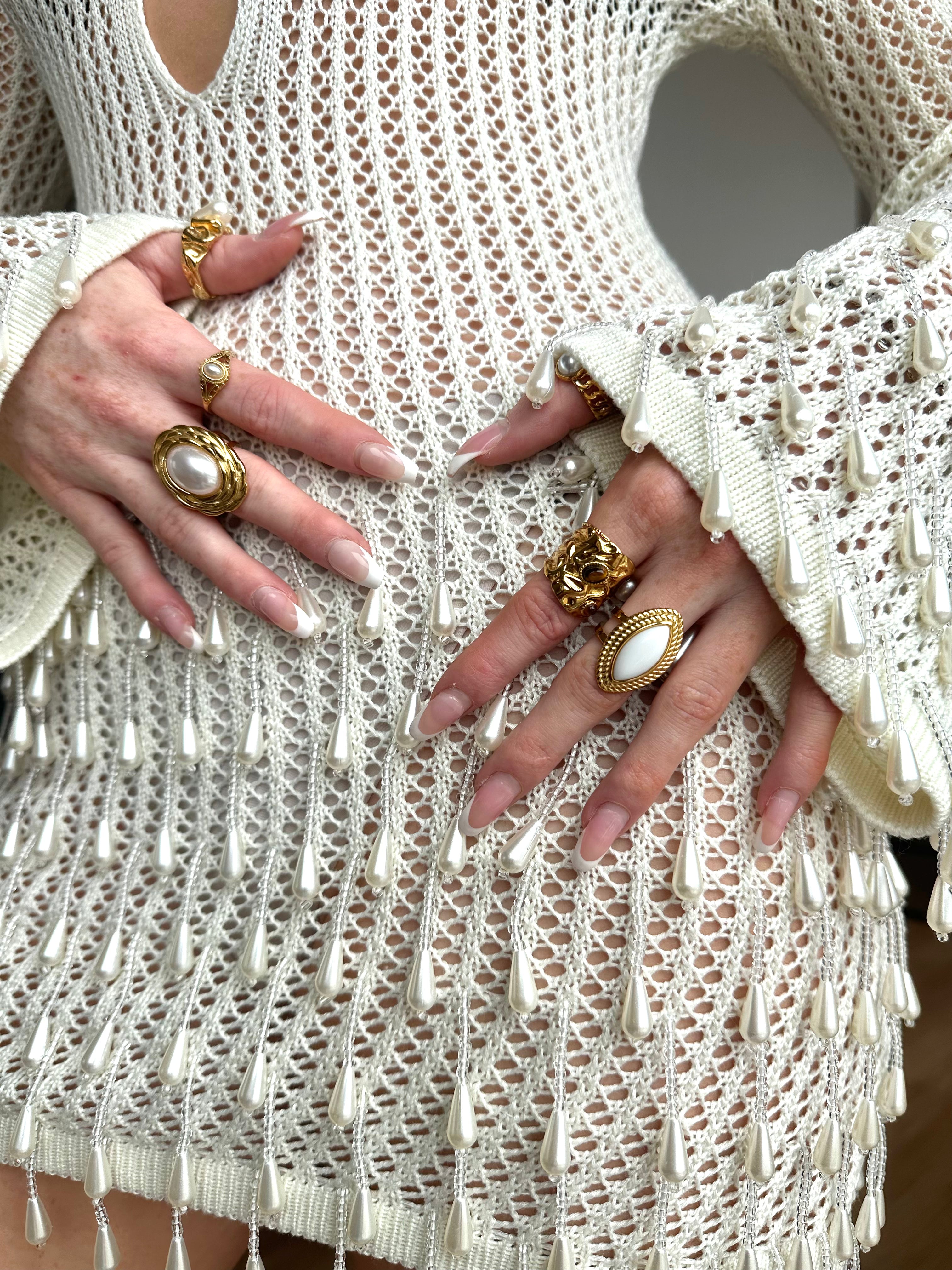 • Avoid wearing your jewelry in water if it contains glued stones or pearls, as they may eventually detach.