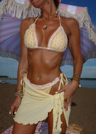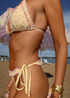 Sweet, delicate, and made for sun-drenched moments. This flattering bikini bottom features a unique soft ribbon at the waist, adding a touch of vintage charm. The mid-rise cut hugs your hips just right, striking the perfect balance between comfort and coquette allure. A love letter to summer days.