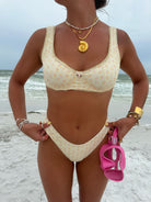 Introducing our tanga-cut bikini bottom, designed to flatter your curves with its cheeky cut and its v-shape at the back! This cut offer the least amount of fabric, perfect for soaking up the sun and get the perfect tan! This bottom offer a scoop shape that allow you to raise higher on the hips, creating flattering shape and illusion of long legs! An essential piece for your summer wardrobe when you want confort and the lowest tan lines!