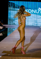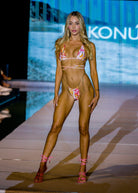 In this LOVER GIRL bikini set, you can unleash your inner little romantic girl. The top is featuring with gold chains hardware and an extra long waist strap to criss cross in front and suit your style needs. The fabric is embellished with Lustrous shine satin and a girly pink. This print makes you glisten under the sunlight with the gold line effect. This bikini is nothing more than a self-love treat for your body!