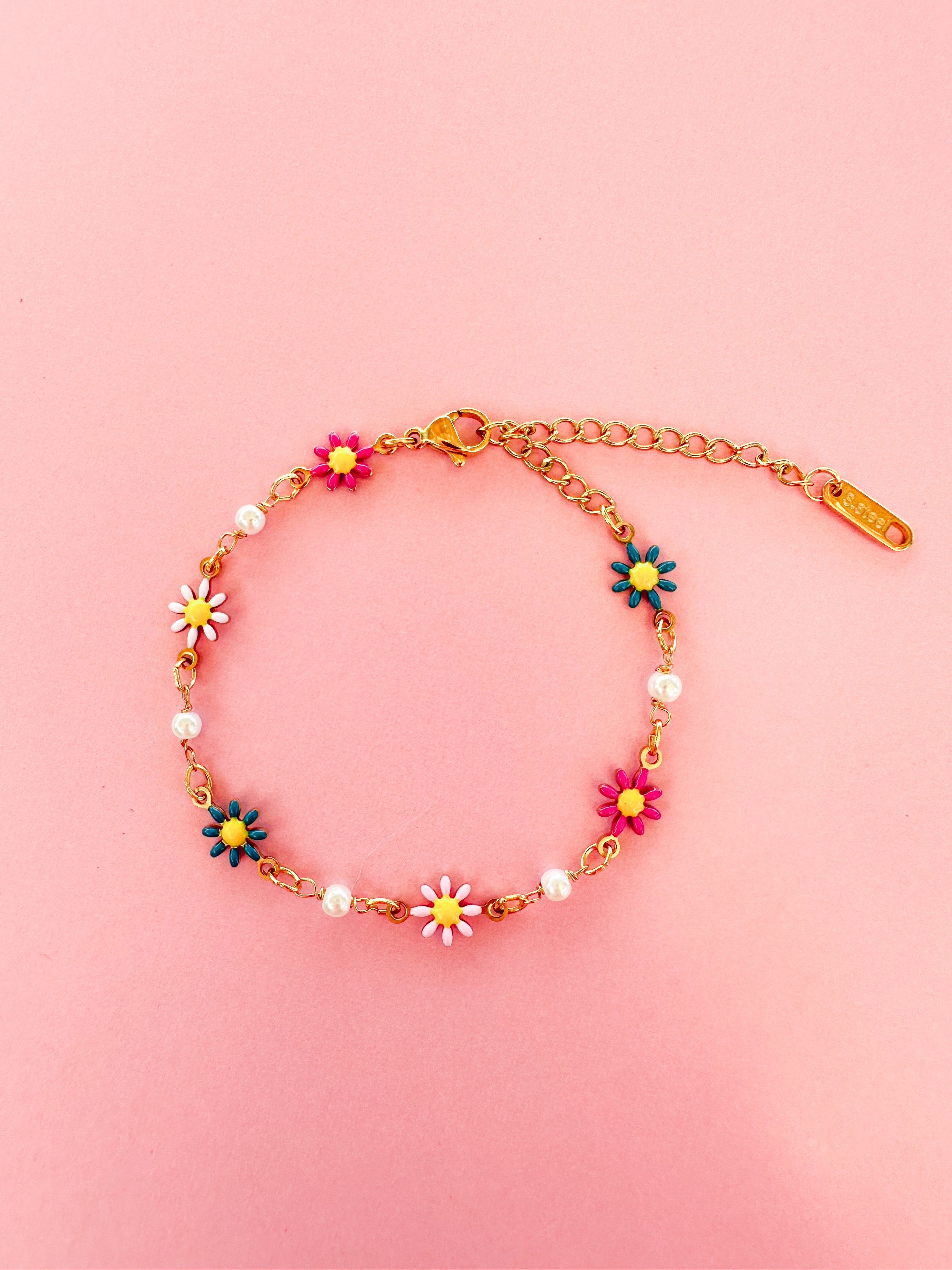 DAISY PEARL MULTICOLOURED | Bracelet - Gold