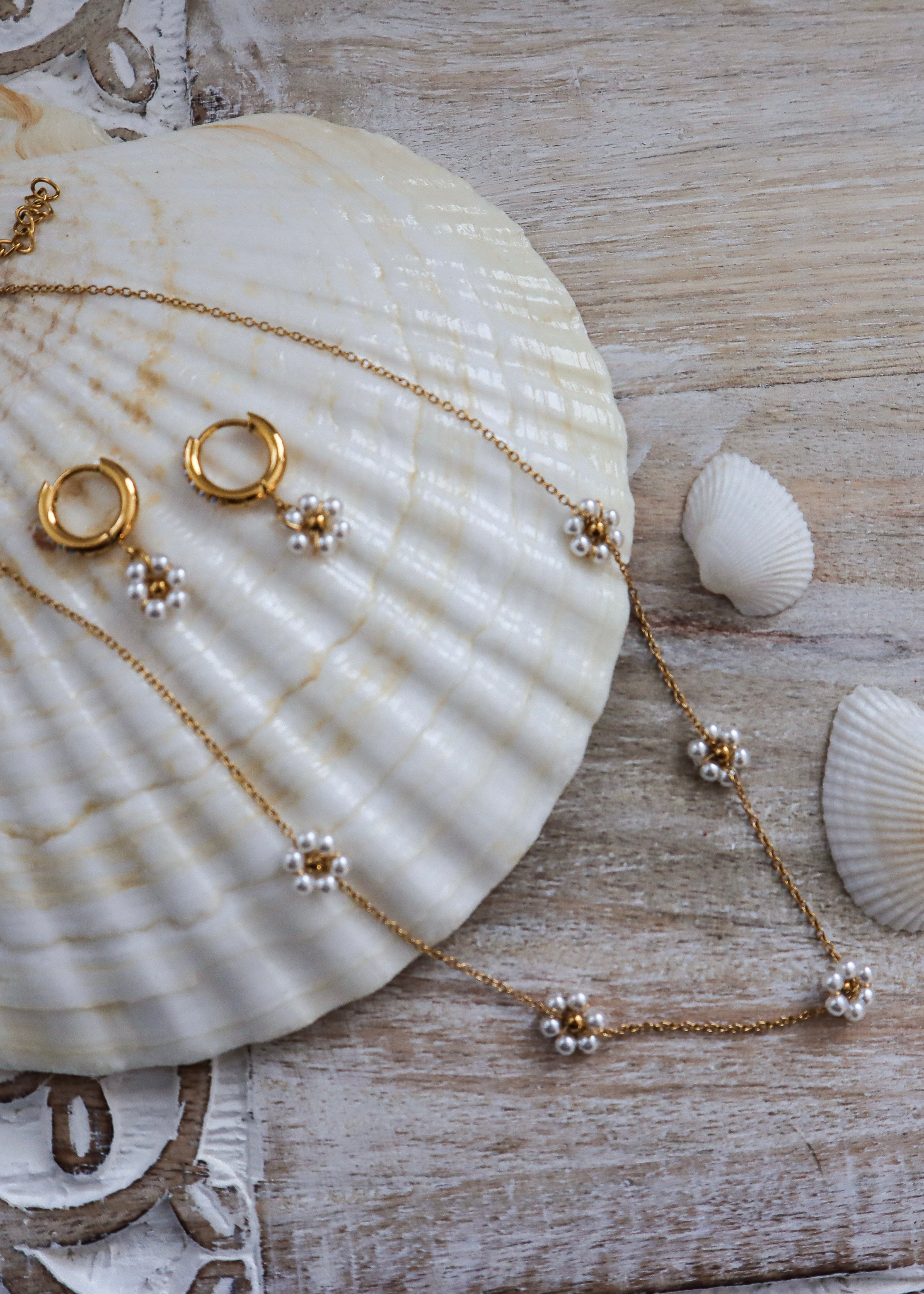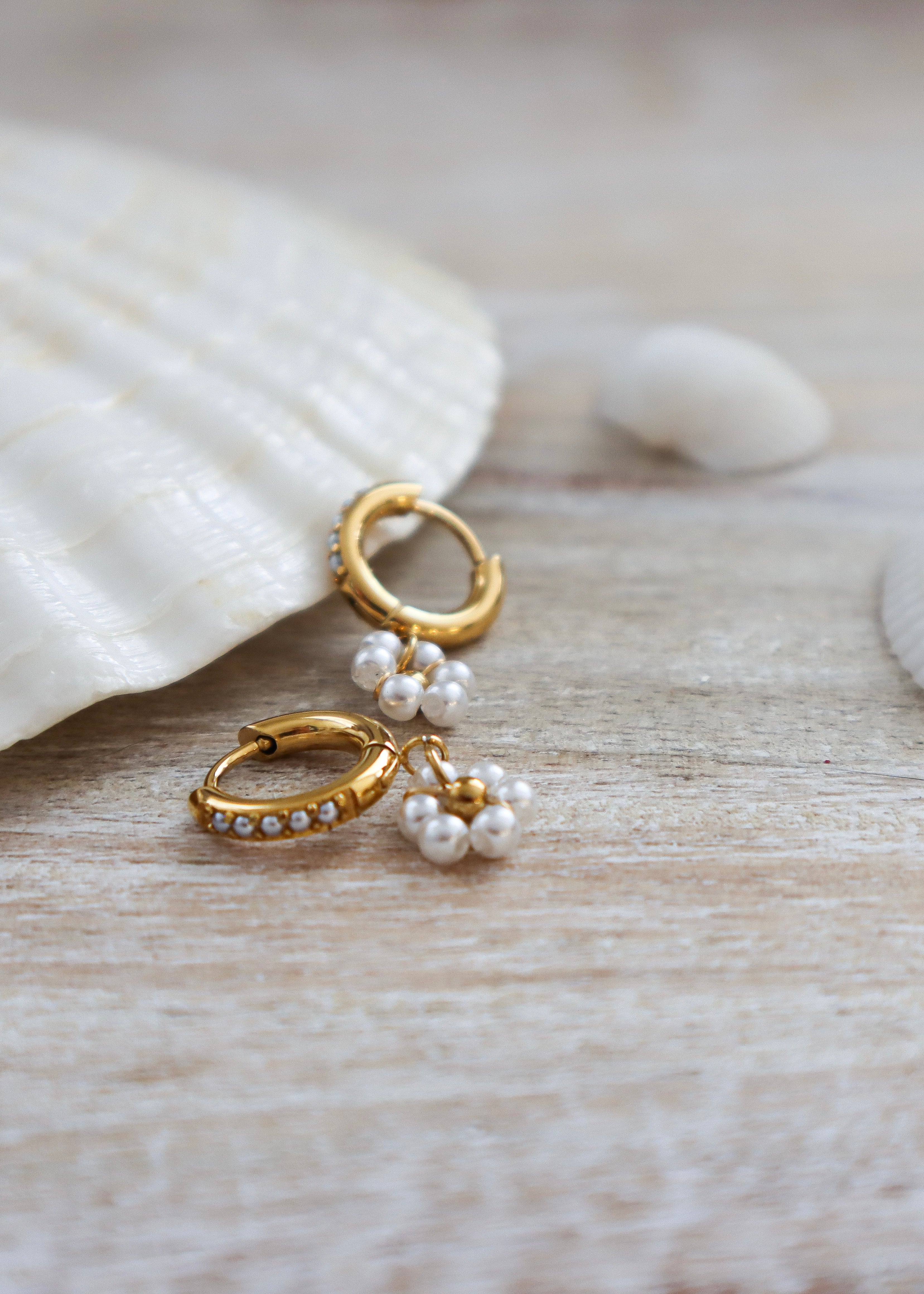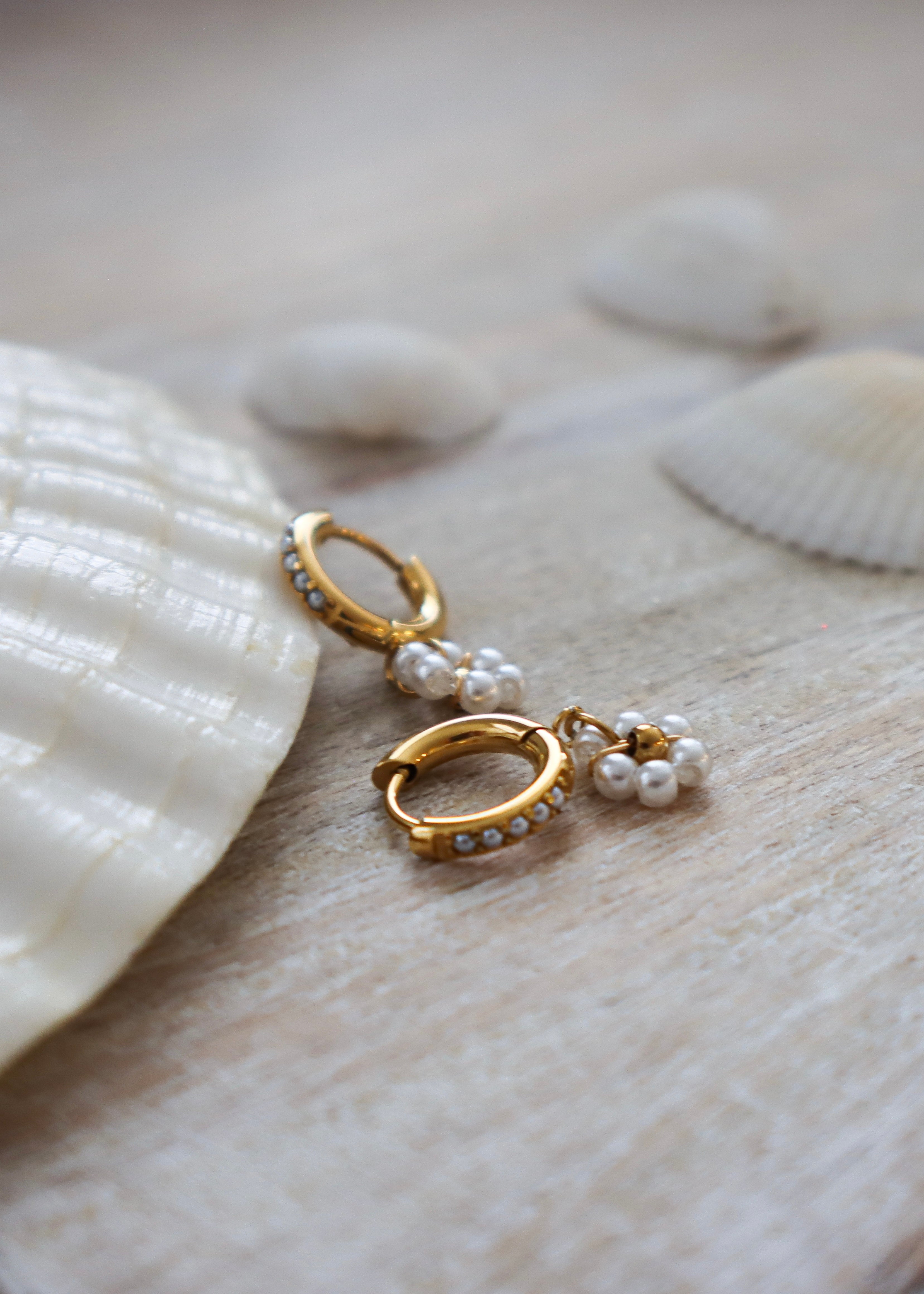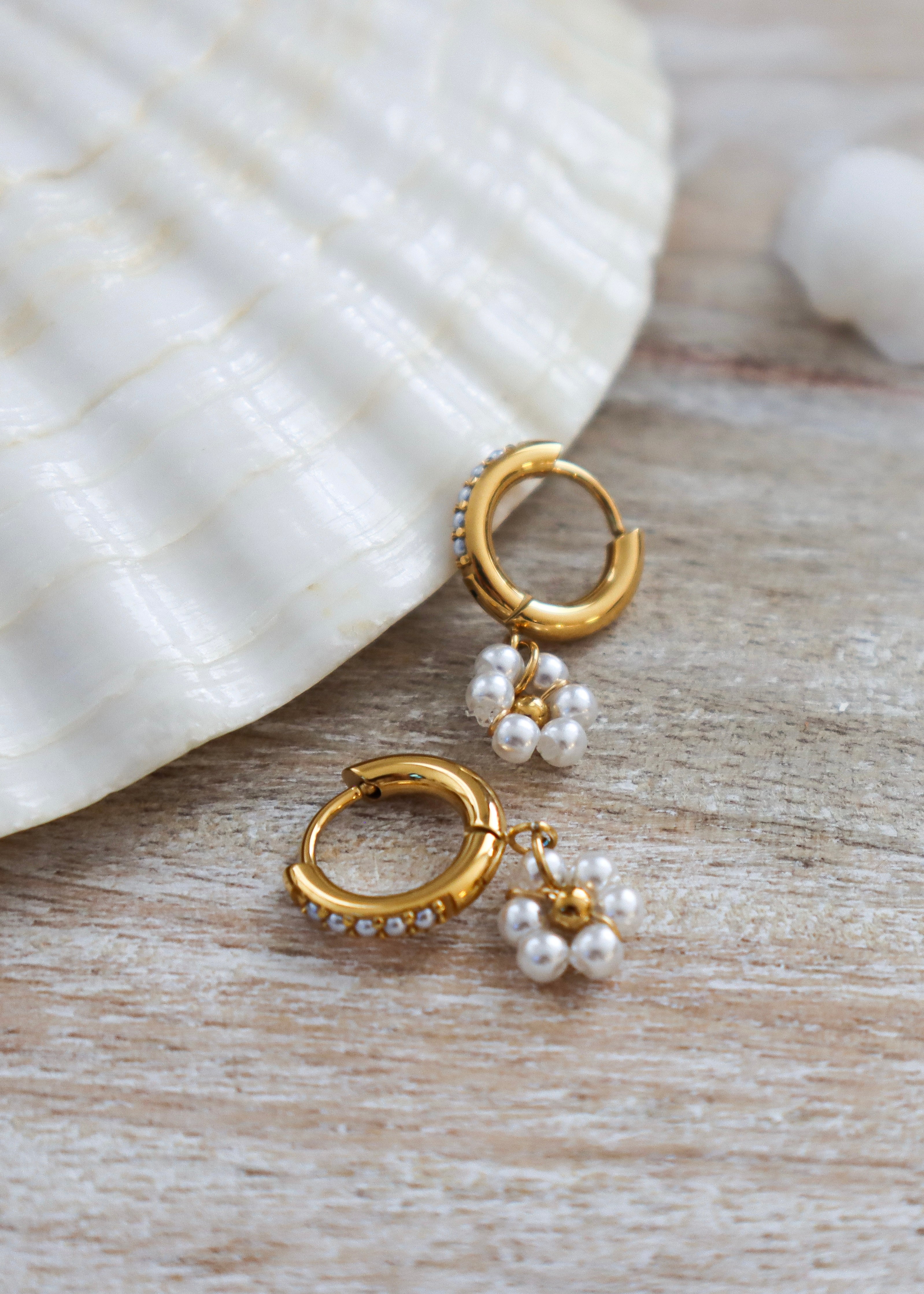CHAMPAGNE FLOWER PEARL | Earrings - Gold
