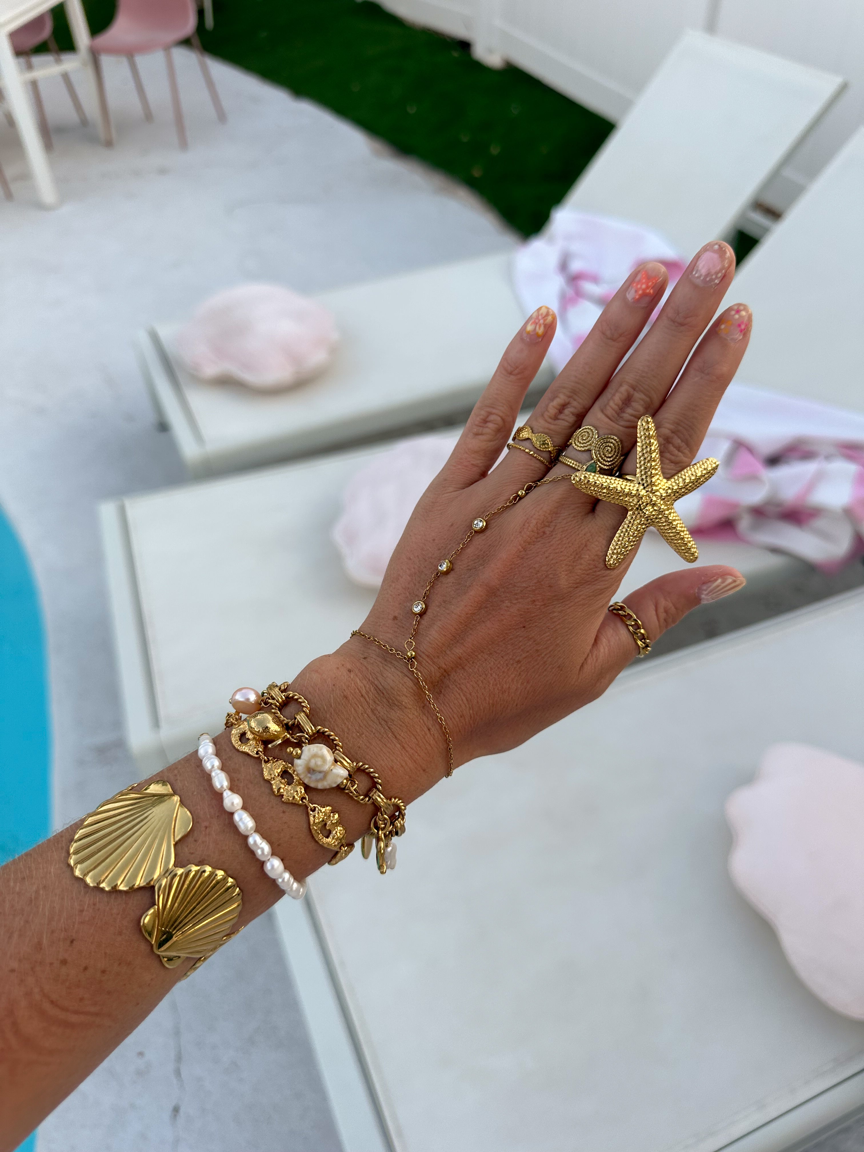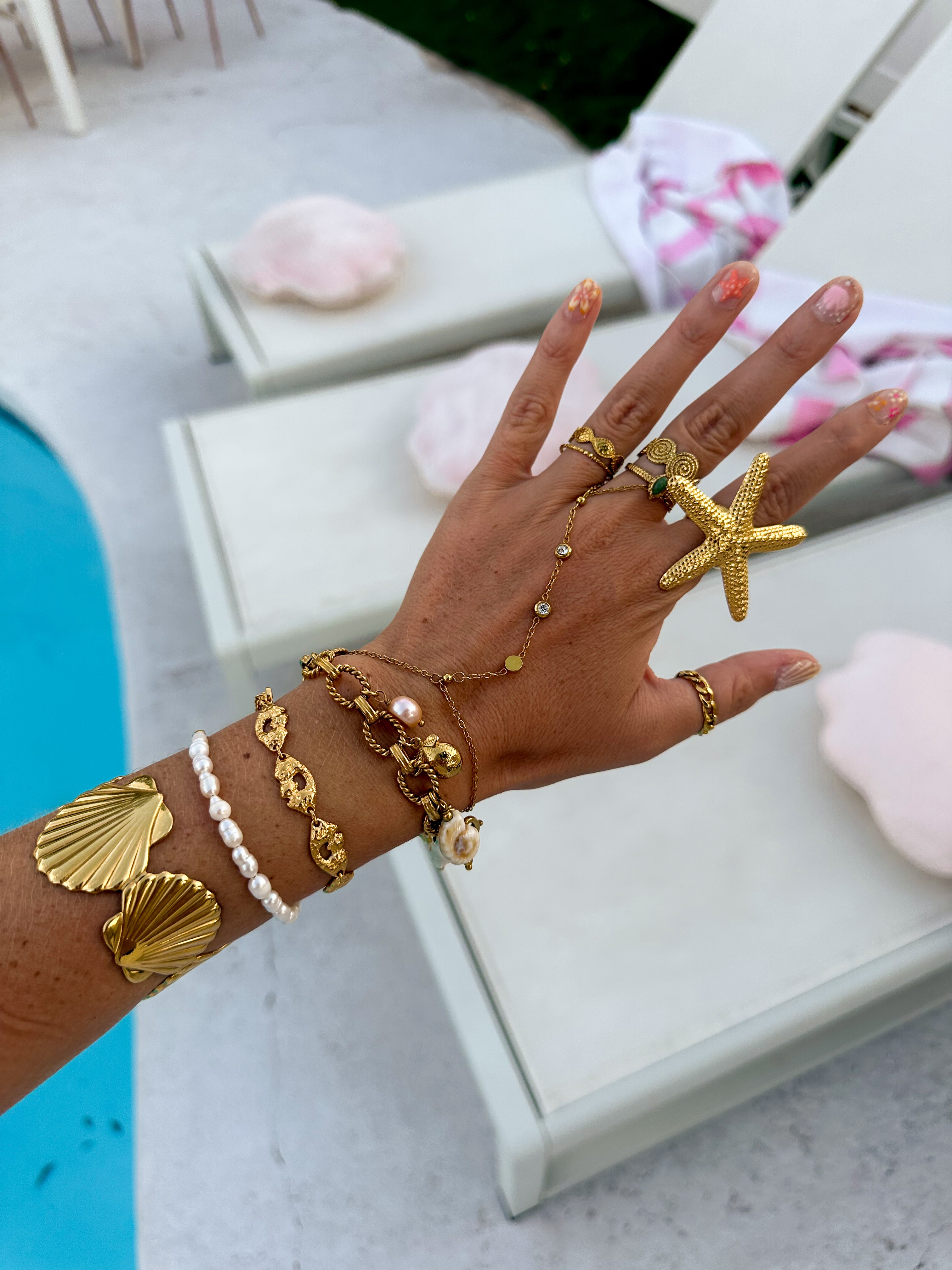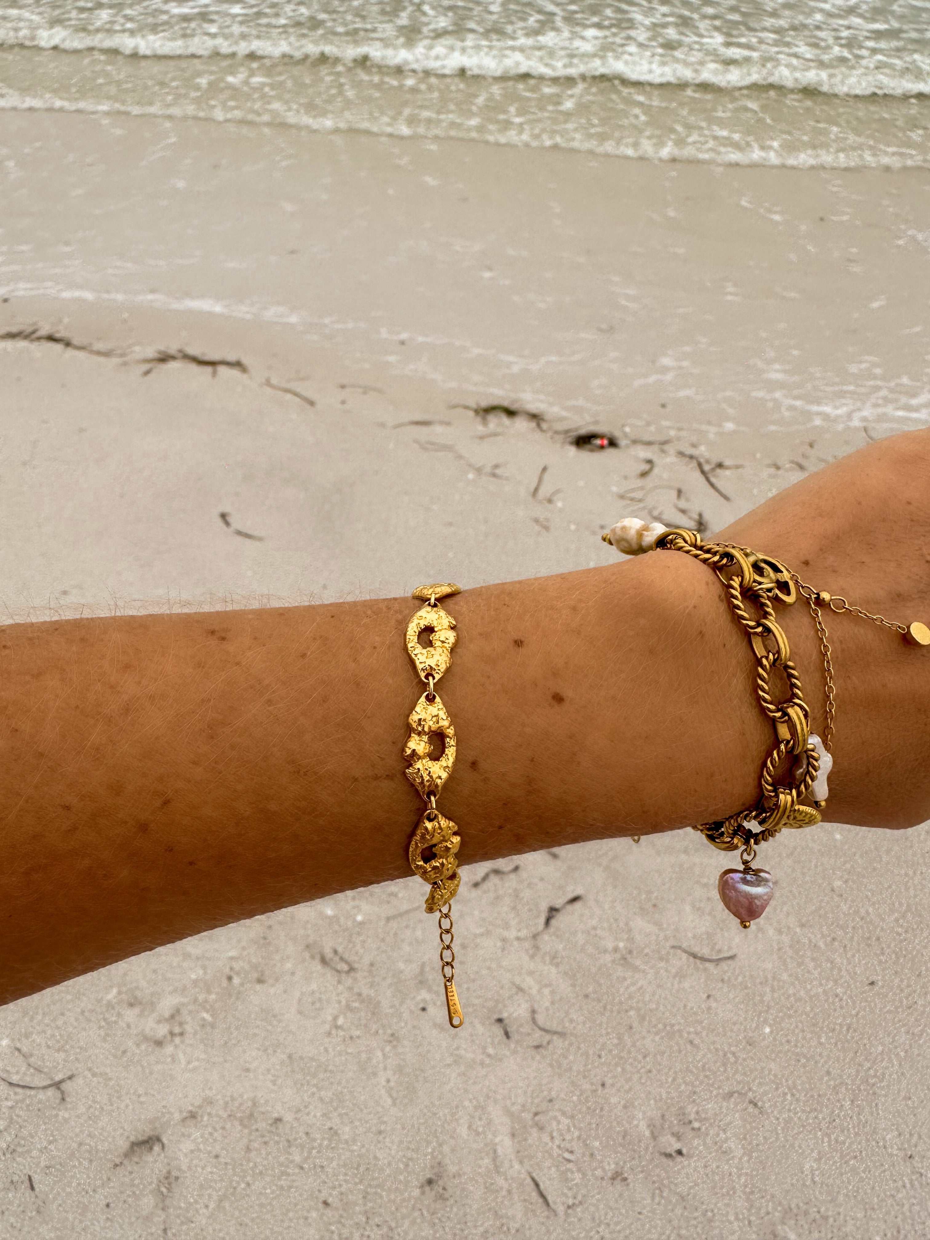 • Charm bracelets require extra care. These bracelets are more exposed to impacts, water, and snagging (for example, charms getting caught in jacket sleeves). For this reason, we recommend avoiding dangling charms such as moons or suns that can easily get stuck, as well as charms with glued stones or pearls, as they are more likely to detach. These issues are not covered under our warranty.