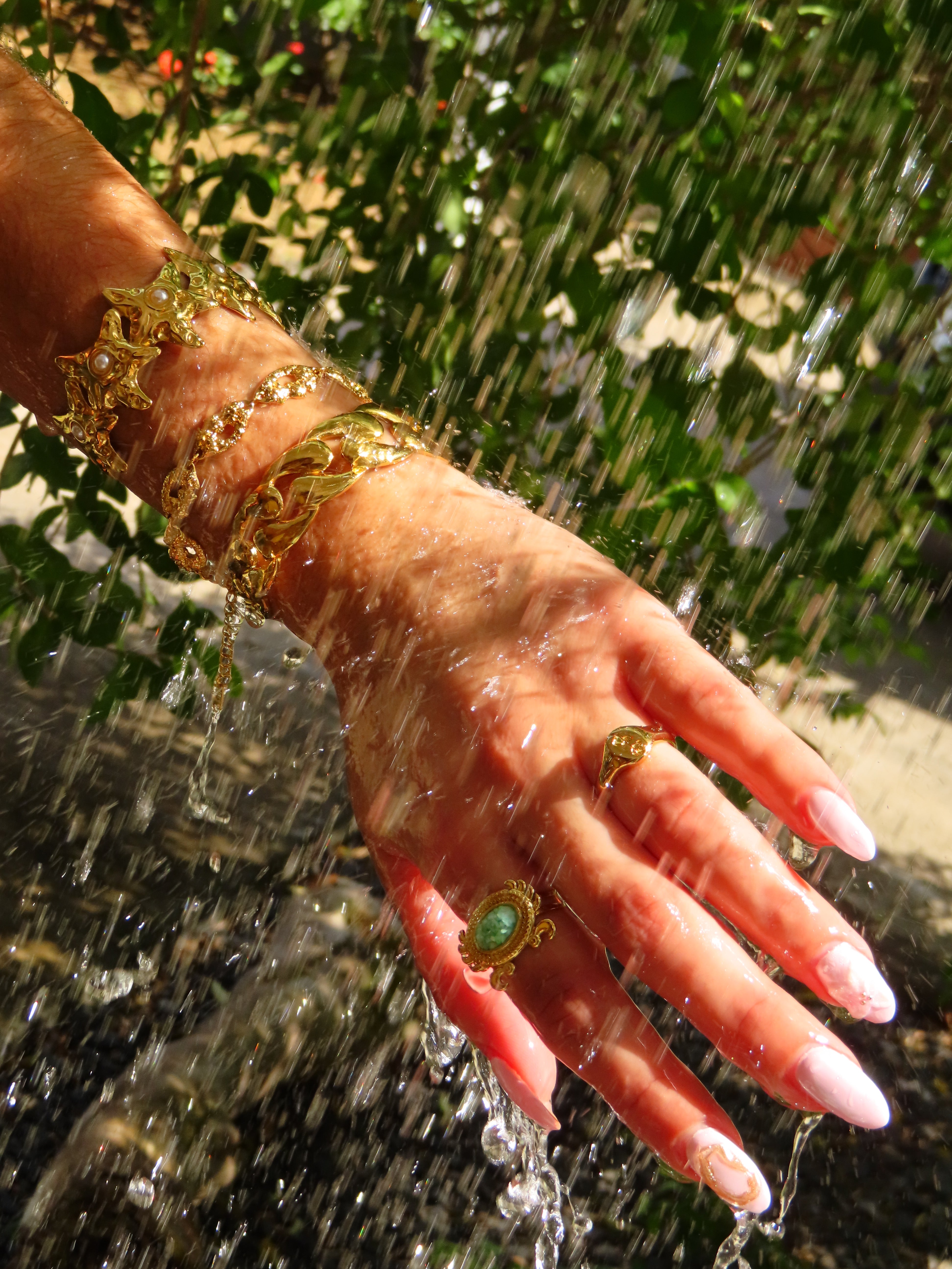 • Avoid wearing your jewelry in water if it contains glued stones or pearls, as they may eventually detach.