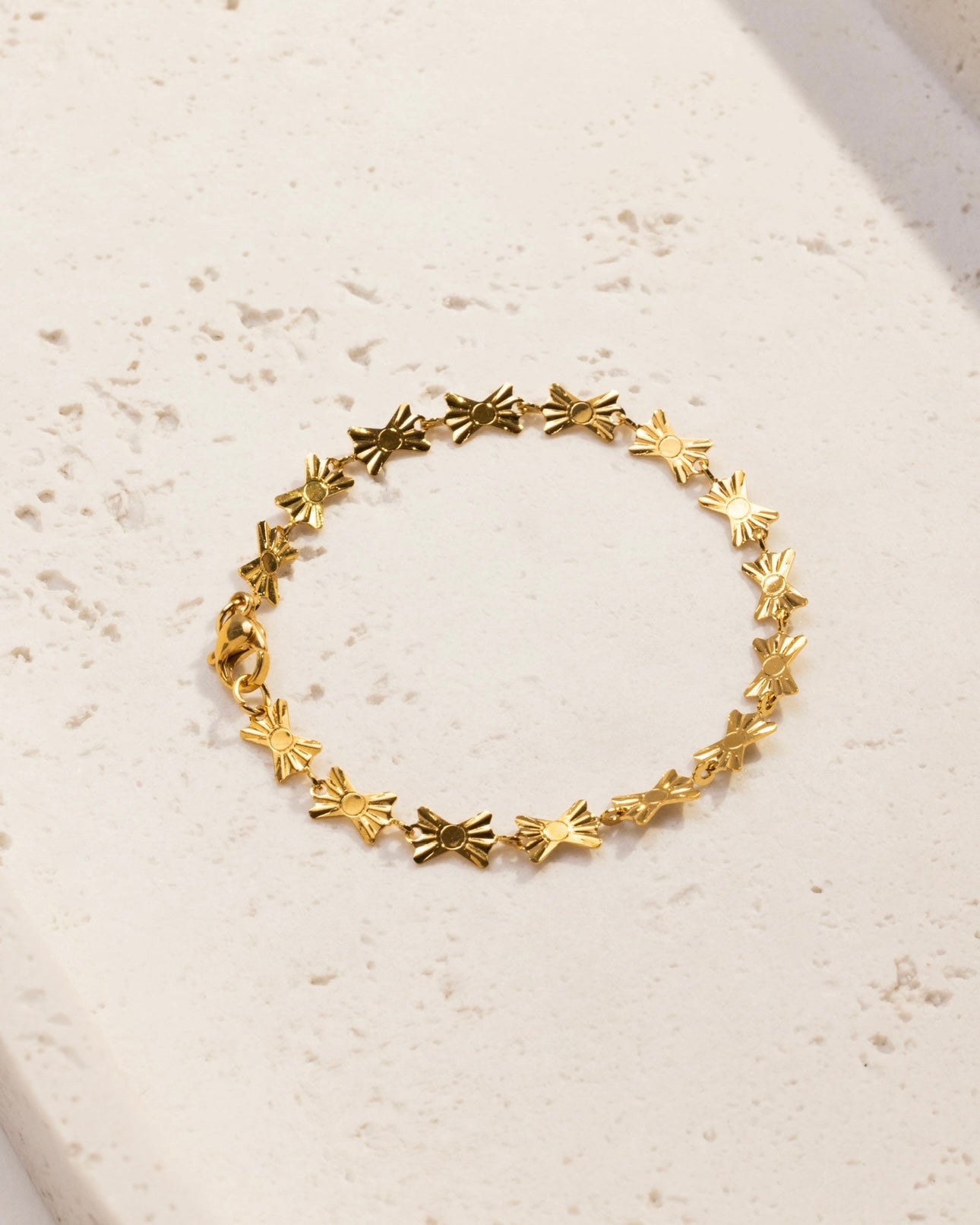 •    Charm bracelets require extra care. These bracelets are more exposed to impacts, water, and snagging (for example, charms getting caught in jacket sleeves). For this reason, we recommend avoiding dangling charms such as moons or suns that can easily get stuck, as well as charms with glued stones or pearls, as they are more likely to detach. These issues are not covered under our warranty.