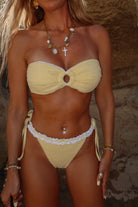 Discover our adjustable bandeau swimsuit, perfect for a flawless tan and exceptional comfort. Wear it strapless to ensure a tan without harsh tan. Its elegant design ensures a tan without lines, while trendy patterns and refined details add style to your sunny days. Girls who buy this say the ruched fabric over the cups provide their nipples with some extra cover!