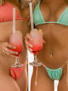 This bikini is nothing more than a self-love treat for your body, so let your inner goddess girl out in this Chain Bright bikini set. The bottom is featuring adjustable gold chains hardware at the waist and a shirring coverage to achieved the perfect fit to every body. The fabric is embellished by a Lustrous gold shiny mesh to make you glisten under the sunlight!